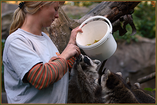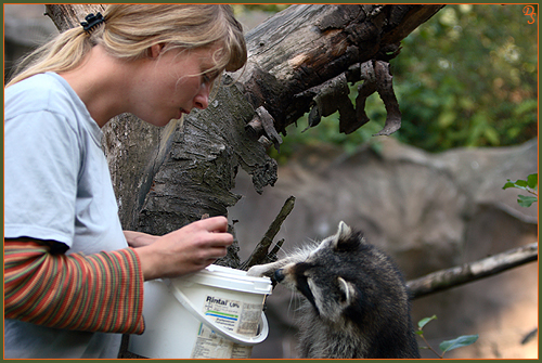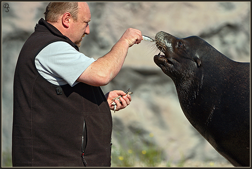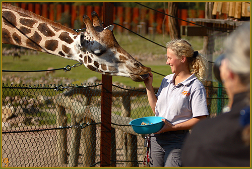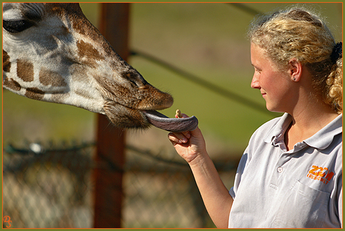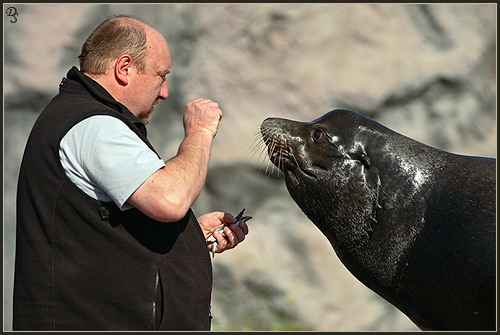 Bei meiner geführten Safari durch die Zoom Erlebniswelt Gelsenkirchen im September 2007 (Preis beim Fotowettbewerb "tierisch nah"), hatte ich die Möglichkeit, in hautnahen Kontakt mit einigen Tieren zu gelangen. Dies war natürlich nicht immer ohne die Hilfe der Vertrauenspersonen der Tiere und einigen Leckerchen möglich. Für mich ist auch die Dokumentation des tollen Verhältnisses zwischen Mensch, insbesondere des Tierpflegers, und Tier ein wichtiger und interessanter Teil der Zoofotografie. Ich möchte mich hiermit bei dem gesamten Zoom-Team für diesen tollen Tag bedanken und ein besonderer Dank gilt den hier abgebildeten Tierpflegern, welche so nett waren mir die Erlaubnis zur Veröffentlichung dieser Fotos zu geben.
