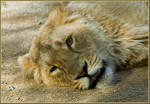 Löwin beim Sonnenbad - Zoo Moulhouse