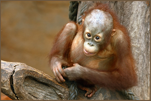 Ein Gepard aus dem Nachbargehege - vielleicht der Papa? Und noch ein Baby aus dem Allwetterzoo Münster, diesmal bei den Orang Utans. Einfach nur drollig.