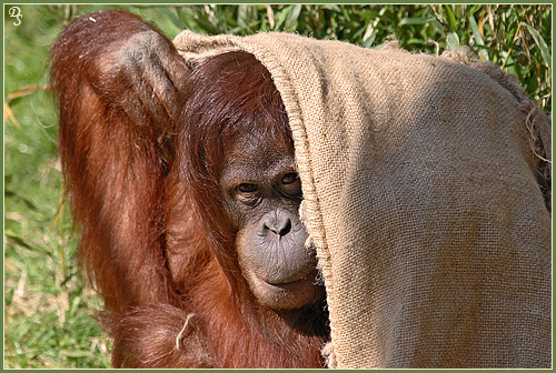 Ich bin gar nicht da! - verspielte Orang Utan Dame im Dortmunder Zoo
