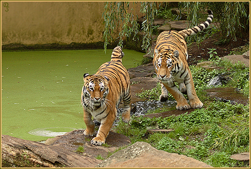Löwenteenager aus dem Allwetterzoo Münster Rasputin jagt Nely im Allwetterzoo Münster - nur eine spielerische Showeinlage für die Fotografen, die zwei verstehen sich blendend. Dadurch können die beiden zusammen gehalten werden, nicht unbedingt die Regel bei Tigern.