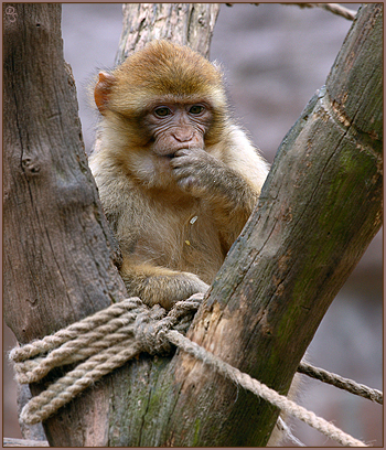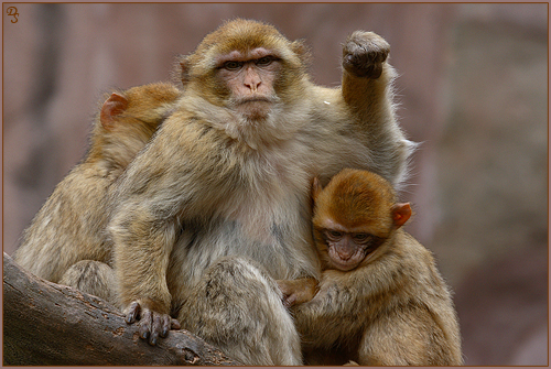 Die Berberaffenmutter war vom Fotoshooting nicht so begeistert.