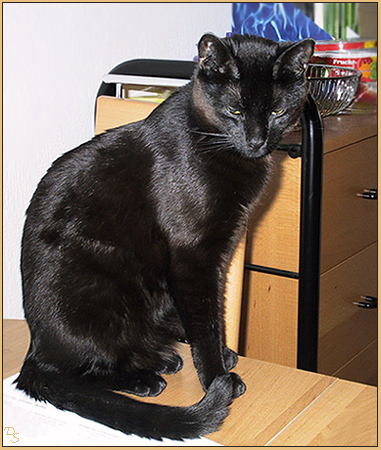 Der Zufall führte mich wieder ins Essener Tierheim, aus dem ja auch Ronja und Charly kamen. Man sagte bei meinem Anruf, dass man ein kleines Sorgenkind hätte, das zu einer vorhandenen Katze solle und jemand mit Erfahrung brauche. Ich war mir nicht sicher, ob ich dieser Aufgabe gewachsen war, aber ich wollte mir das Sorgenkind zumindest mal anschauen. Also fuhr ich im September 2002, ich meine es war der 12.September, wieder mal nach Essen.